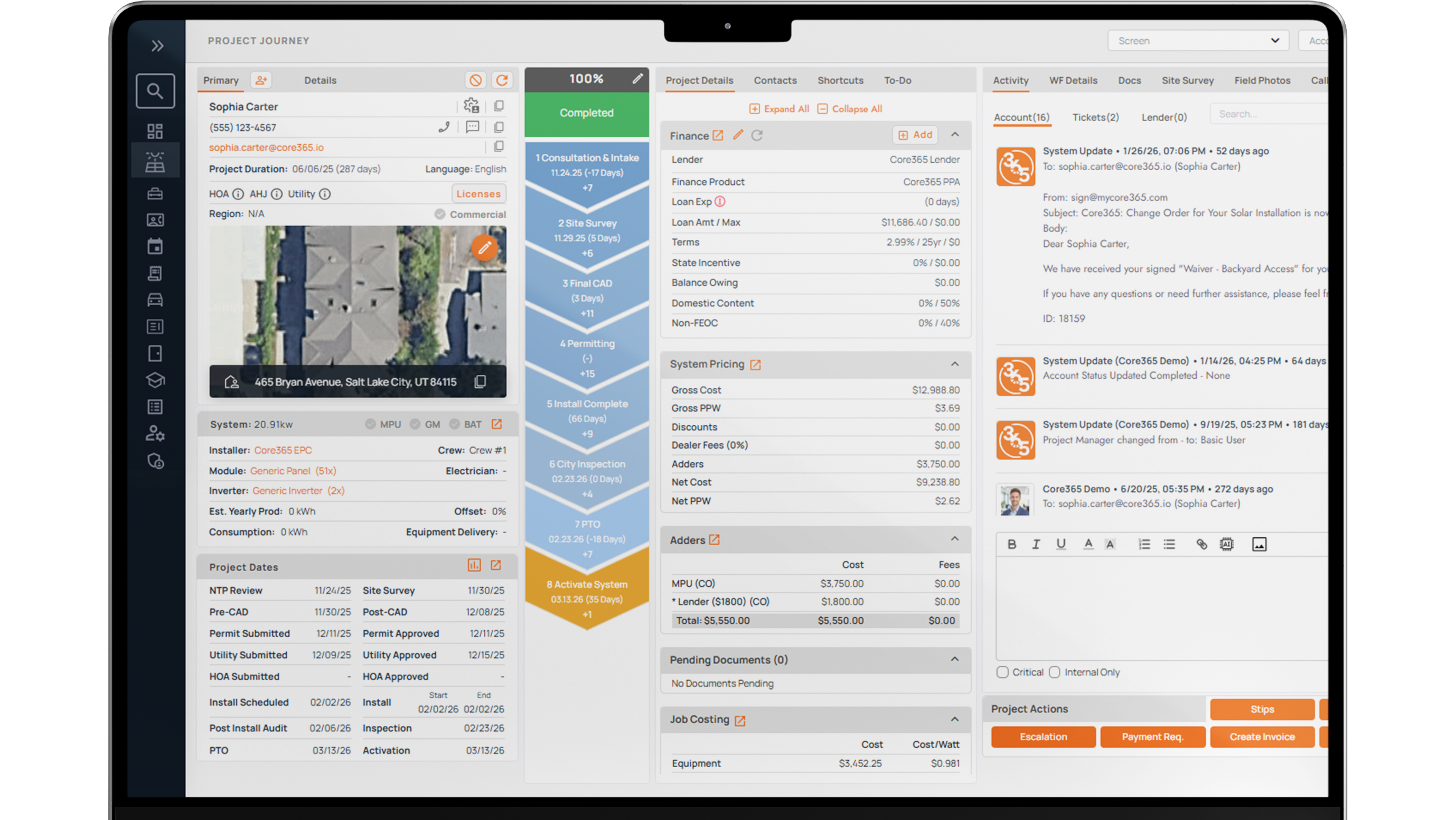 Core365 centralizes solar permitting requirements, licensing documentation, and lender coordination into a single renewable energy management platform. By eliminating spreadsheets and disconnected systems, teams gain real time visibility into compliance, financing status, and project approvals across every market.